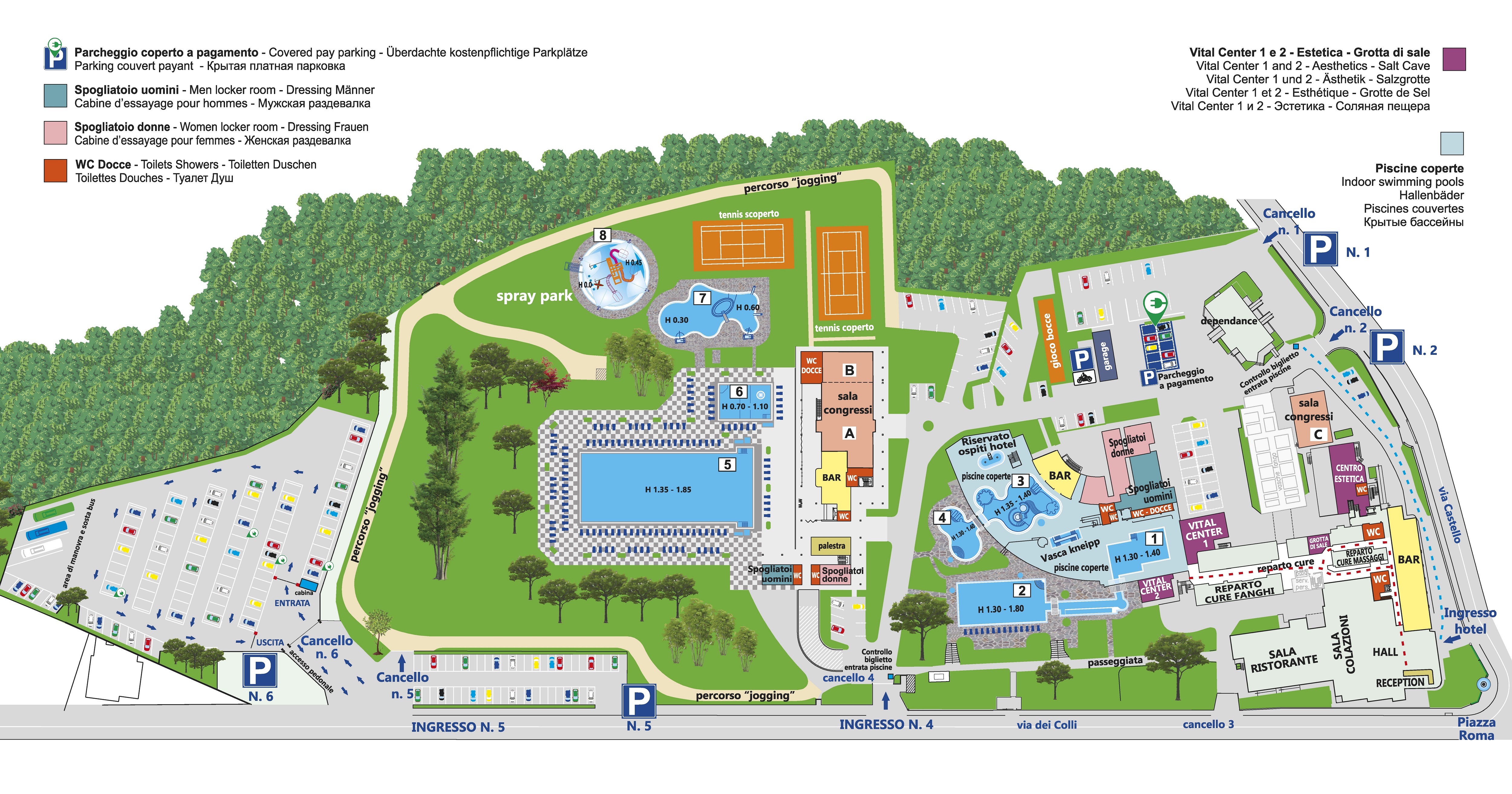 Qualsiasi sarà la vostra scelta, avrete a disposizione le nostre 8 piscine termali, interne ed esterne, numerose postazioni idromassaggio e la piscina olimpionica immersa nel verde del nostro parco di 40.000 mq.
